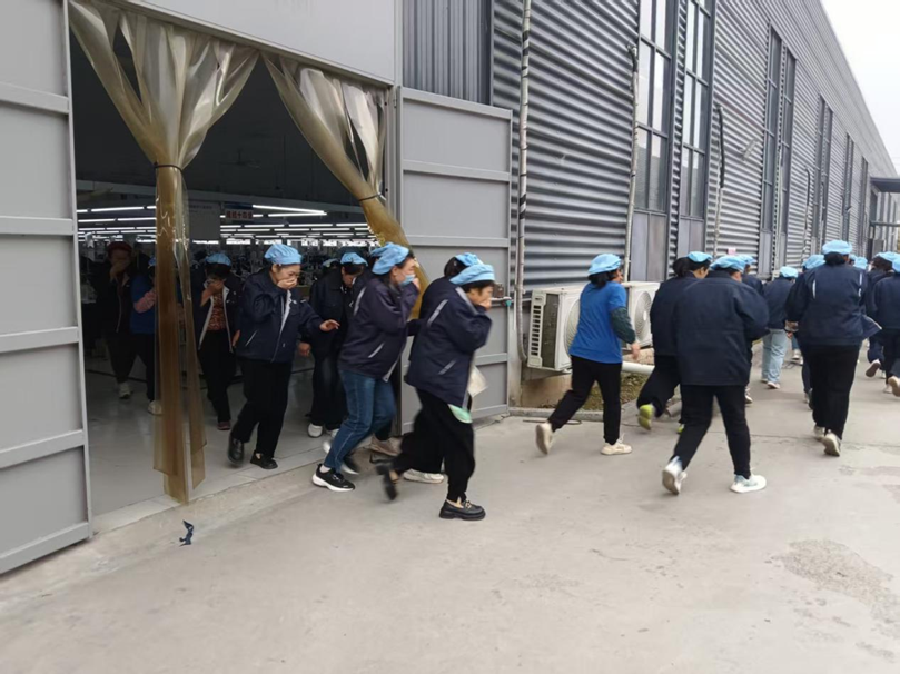 员工们手捂口鼻,行动迅速地撤离车间,整个过程紧张而不慌乱,最终秩序井然地在紧急集合点完成集结。现场,由企管杨柳对员工进行消防安全知识教育,让员工了解并掌握发生火灾事故时自救自护的技能。