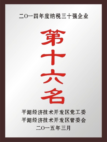 平湖市华城制衣有限公司荣获平湖经济技术开发区二0一四年度纳税三十强企业第十六名;