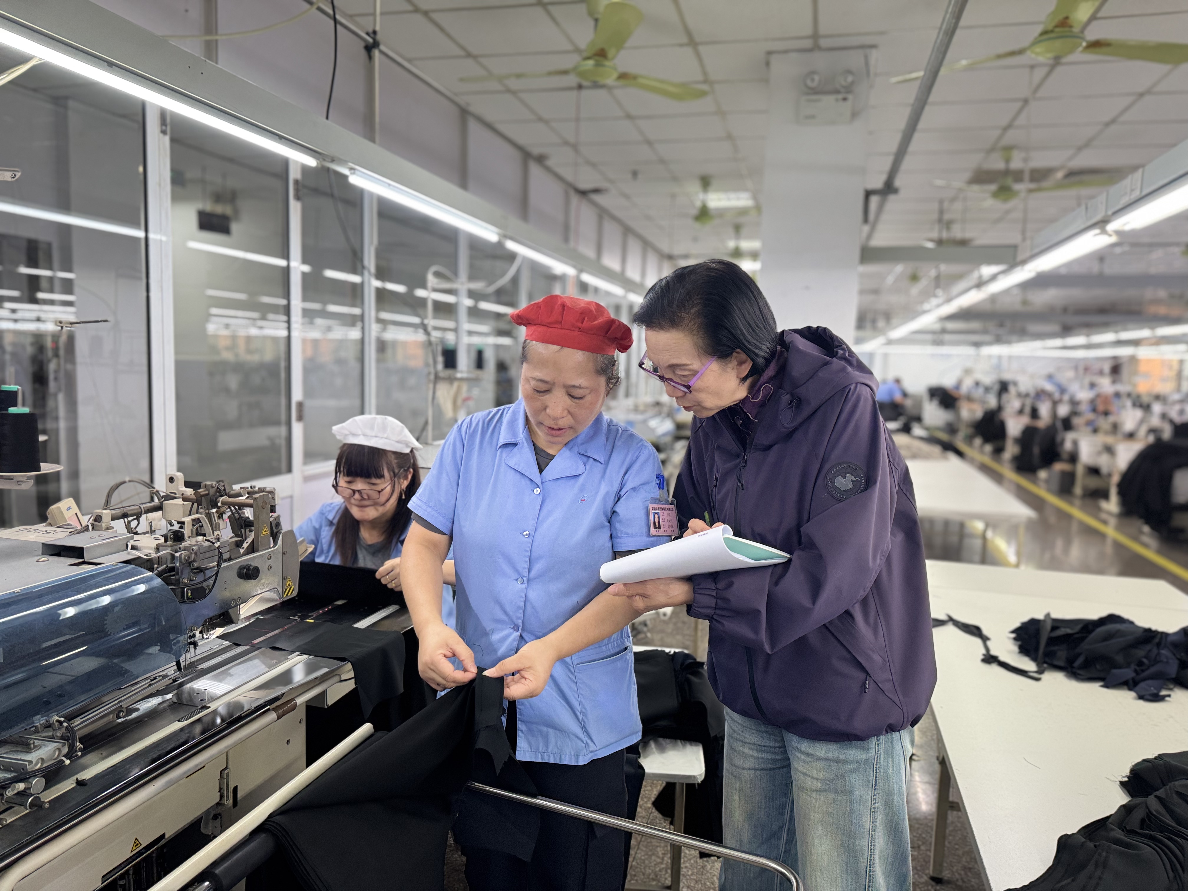在职能部门,围绕人力资源配置、供应商管理、客户反馈处理等体系要素进行了深度问询。在生产车间,专家组重点查看了服装裁剪、缝制、检验等关键工序的标准化执行情况。